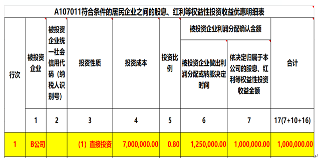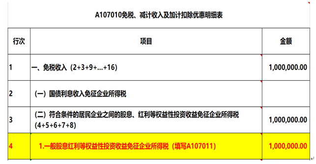 4、由于稅法對符合條件的股息、紅利等權(quán)益性投資收益給予免稅待遇,因此只需要填報A107011、A107010申報表來反應(yīng)投資收益免征企業(yè)所得稅。