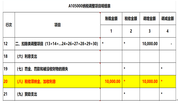 2019年匯算清繳的時候,社保滯納金1萬元這樣填報是否正確?