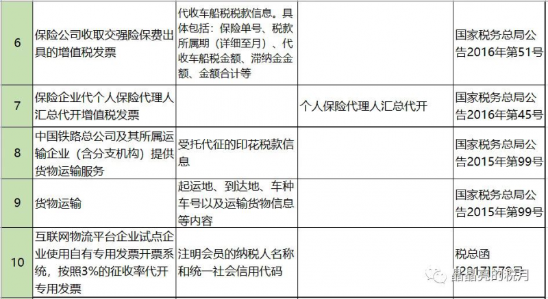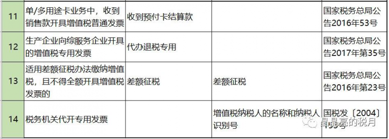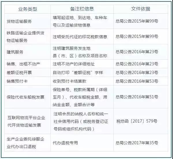 一、增值稅發(fā)票備注欄總表