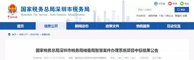近日,國家稅務(wù)總局深圳市稽查局公布智慧案件辦理系統(tǒng)的中標結(jié)果。“智慧稽查”時代真的來了!